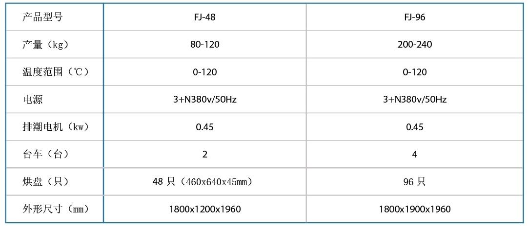 以蒸汽為熱源,通過蒸汽管道,熱空氣層流經(jīng)過烘盤空隙,將熱量傳給物料,讓物料揮發(fā)出濕氣。 主要技術(shù)參數(shù)